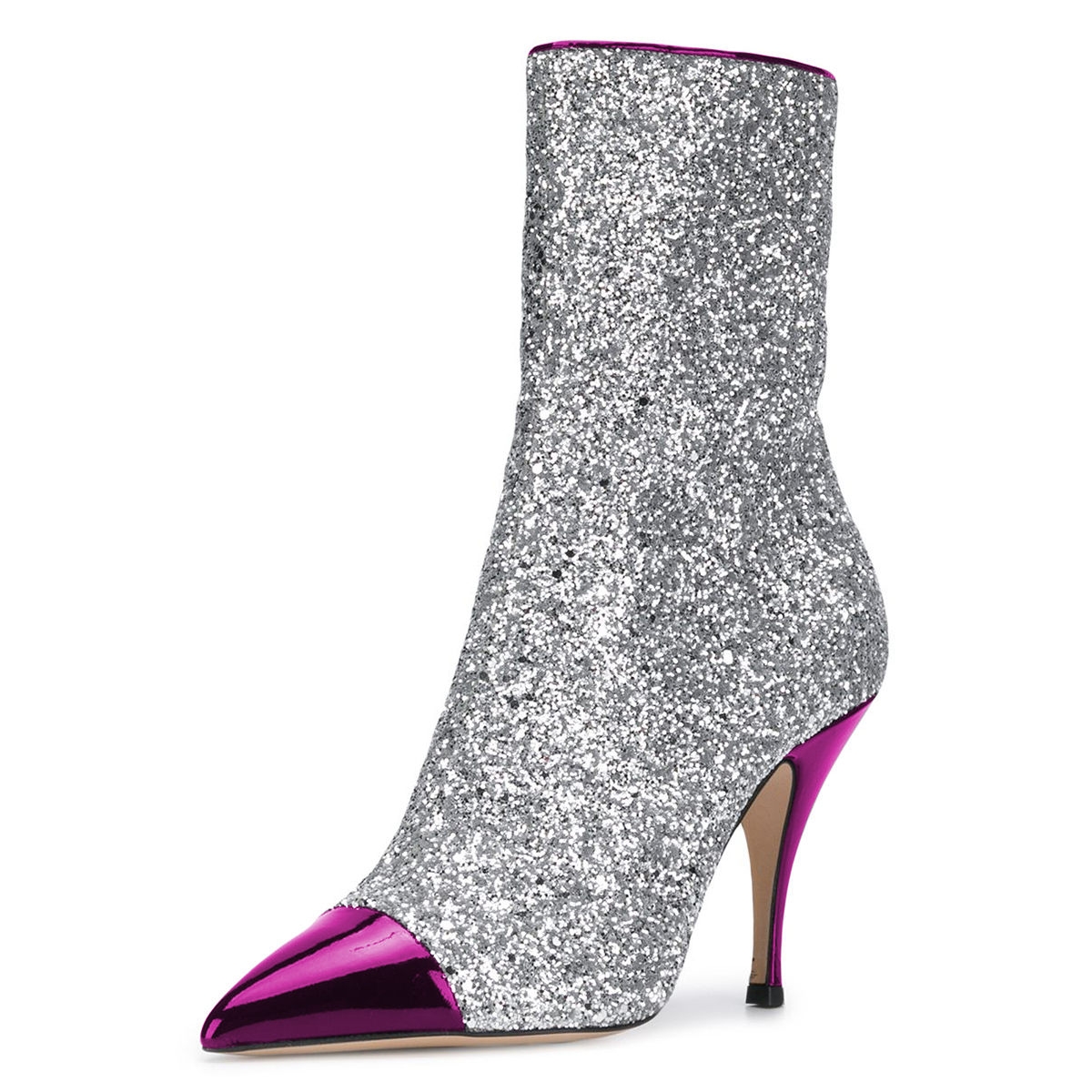 FSJ Purple and Silver Glitter Pointy Toe Fashion Ankle Boots