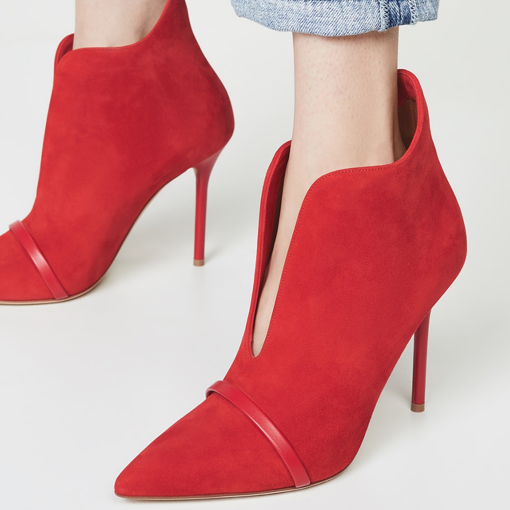 Red Vegan Suede Boots Cut Out Stiletto Heel Ankle Boots