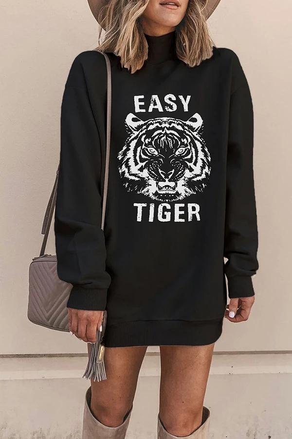 TurtleNeck Tiger Print SweatShirt Tops