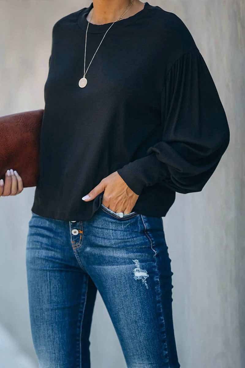 Long Sleeve Solid Color Blouse