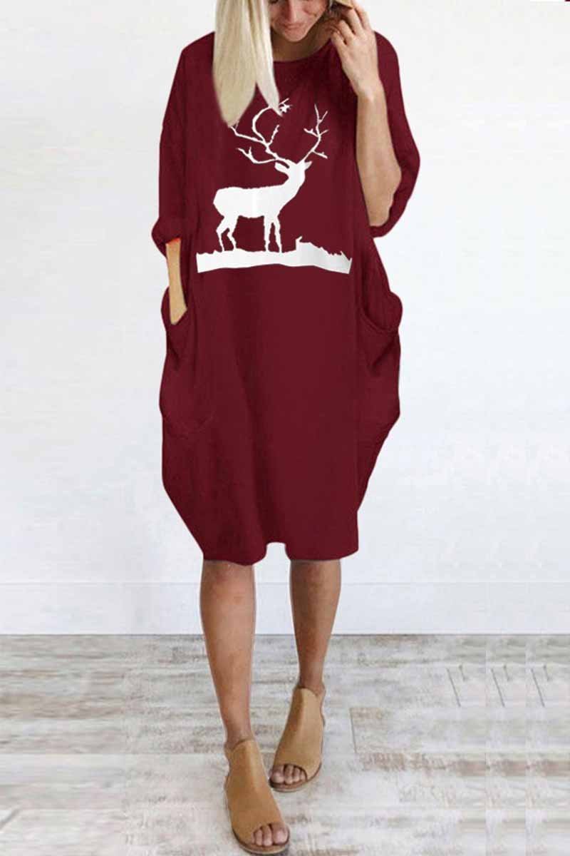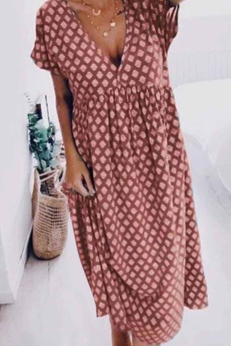 Short Sleeve Leopard Print V-Neck Midi Dress