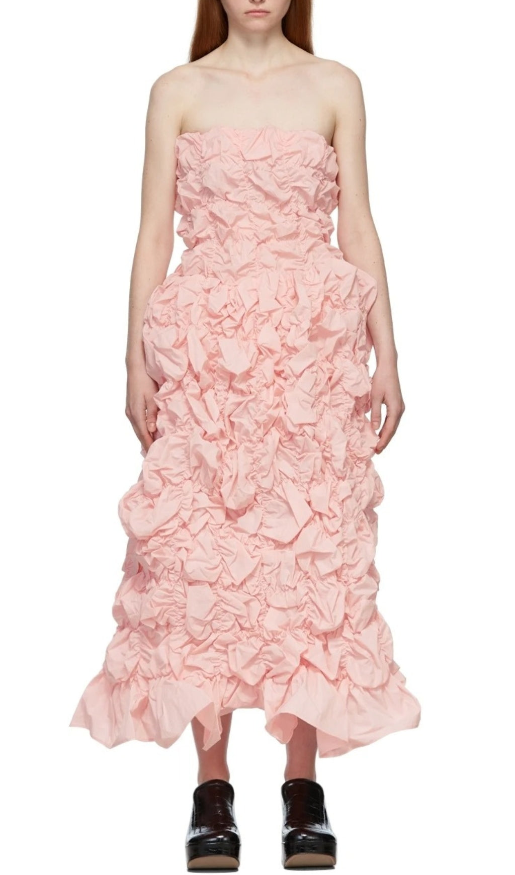 FOLDinG RuffleD Midi Dress in Pink
