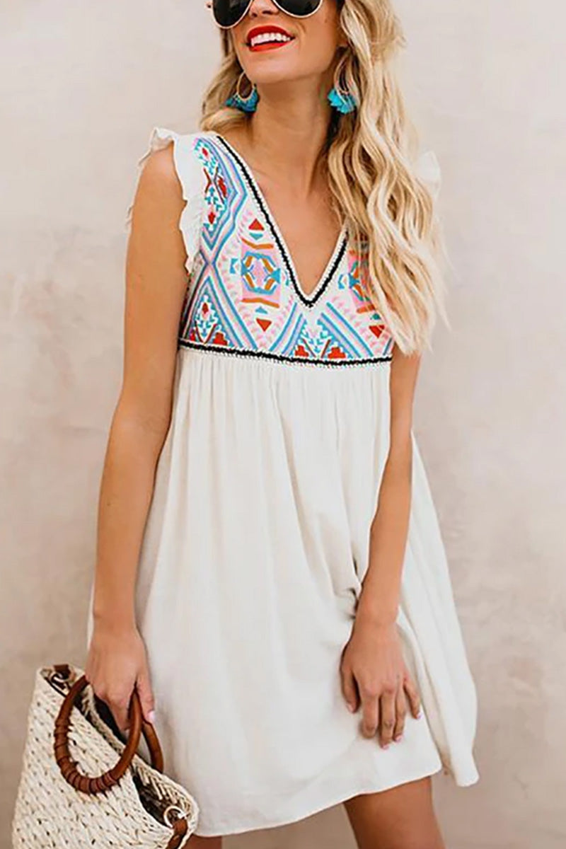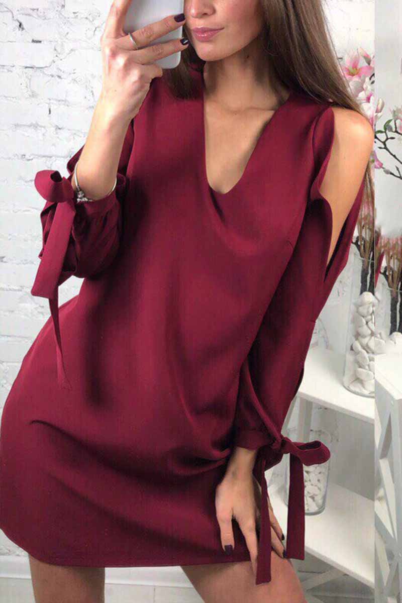 Casual V Neck Elastic Cuff Sleeve Mini Dress