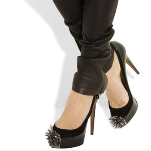Black Peep Toe High Heels Women'S Elegant Platform Rivets Shoes Evening Stiletto Pumps