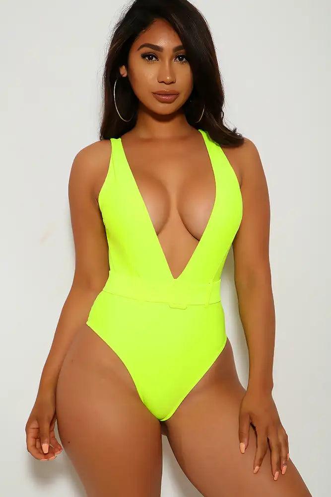 Neon Lime V-Cut One Piece Swimsuit