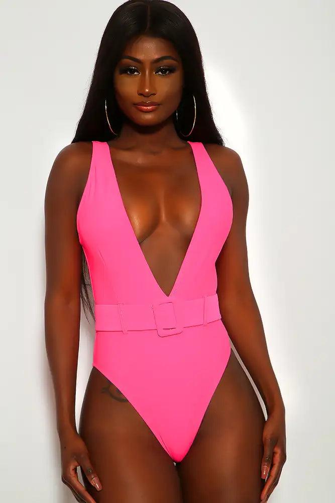 Neon Pink V-Cut One Piece Swimsuit