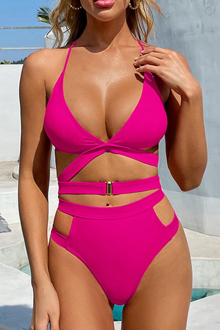 Pink Cut Out High Waist Two Piece Swimsuit