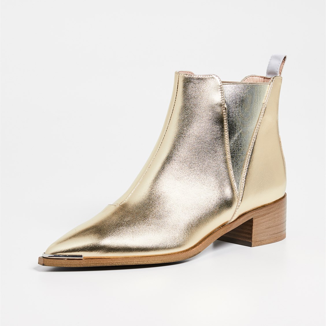 Gold Chelsea Boots Pointy Toe Slip-on Chunky Heel Ankle Boots