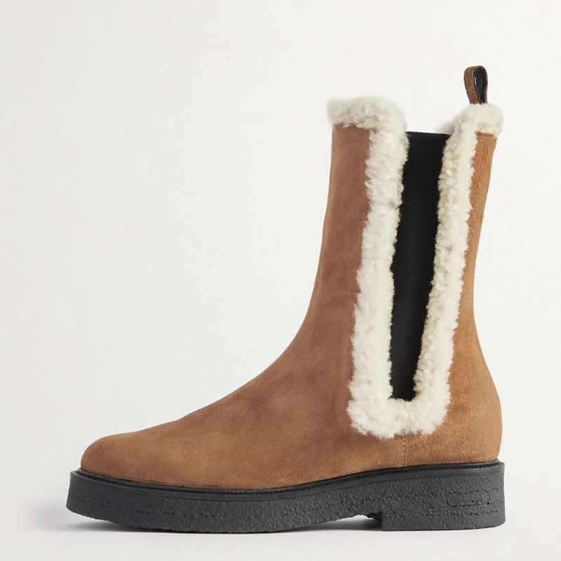 Brown Vegan Suede Shearling-trimmed Chelsea Boots for Women