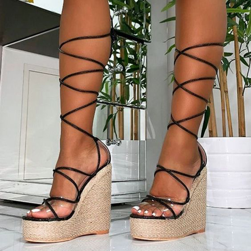 Women'S Open Toe Wrapped Sandals Classic Platform Wedge Shoes Vintage Braided Heels