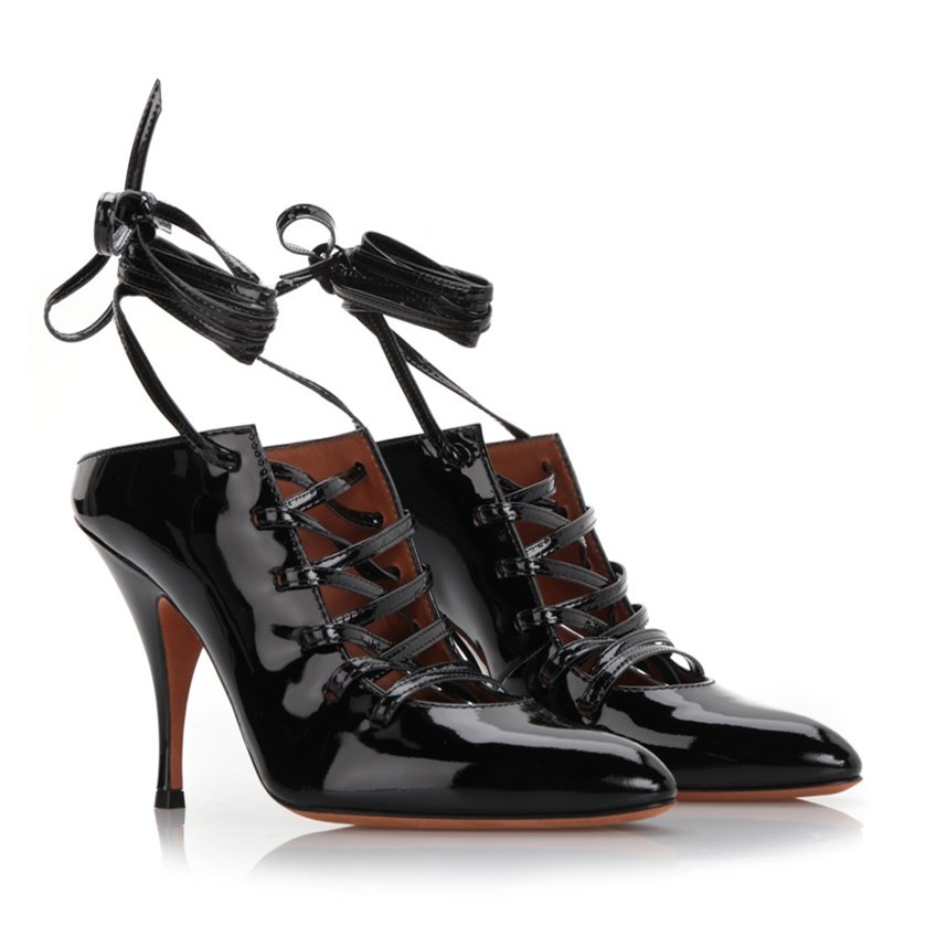 Classic Black Patent Sandals Women'S Pointy Toe Stiletto Heel Office Ankle Strap Shoes