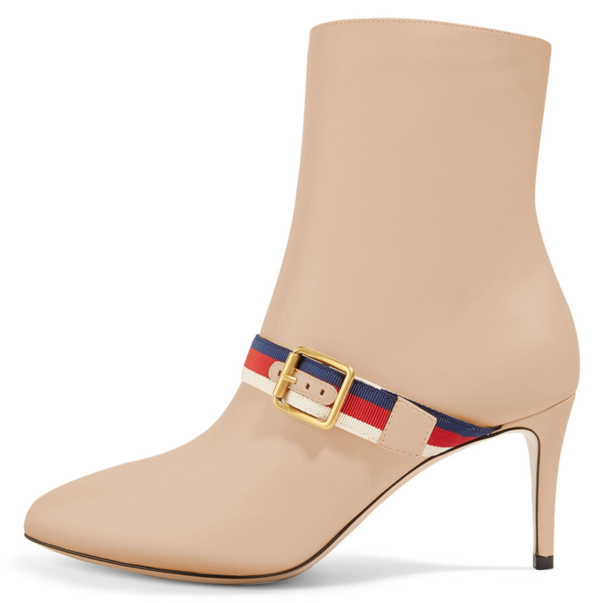 Nude Buckle Strap Fashion Almond Toe Ankle Boots