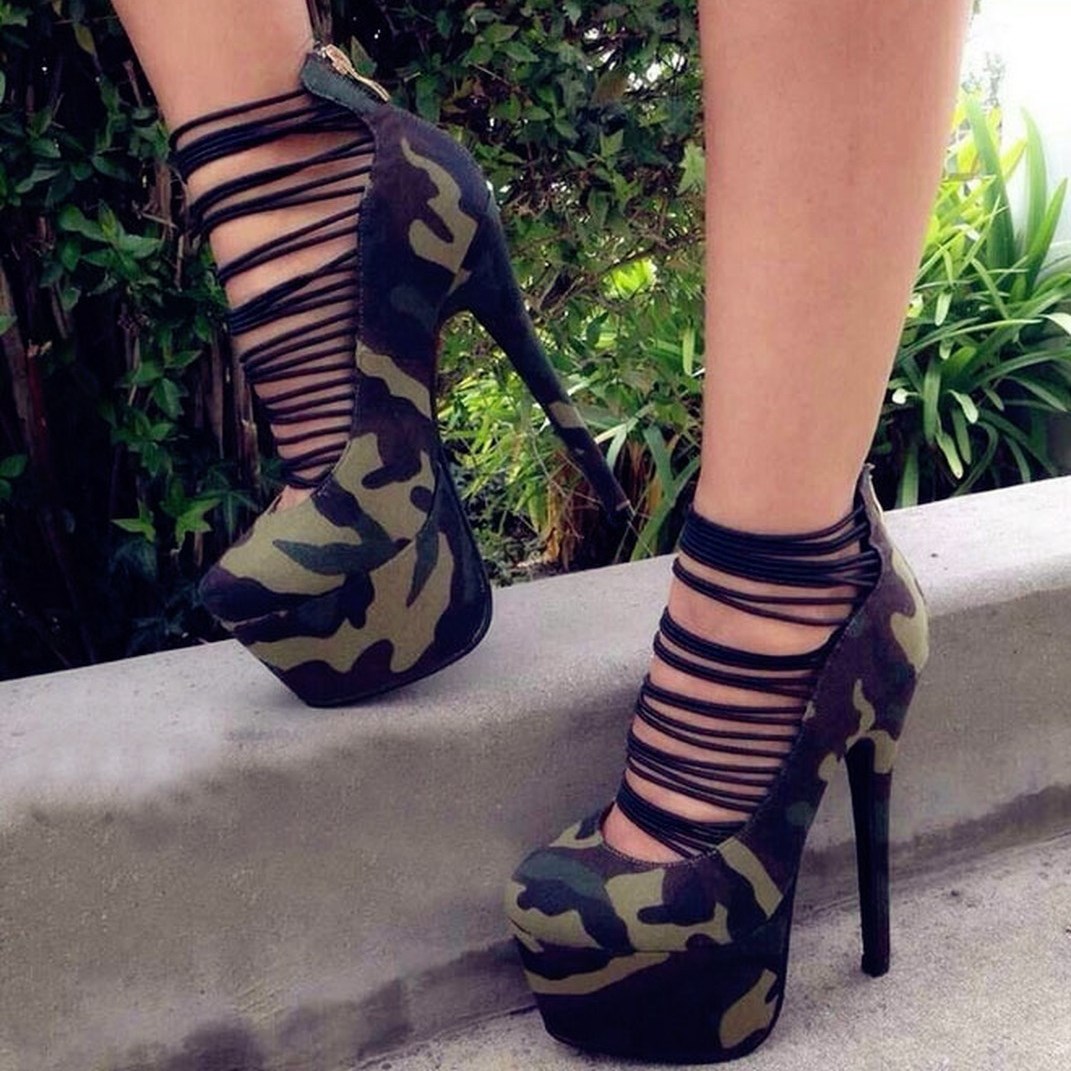 Camouflage Strappy Heels Platform High Heel Shoes by FSJ