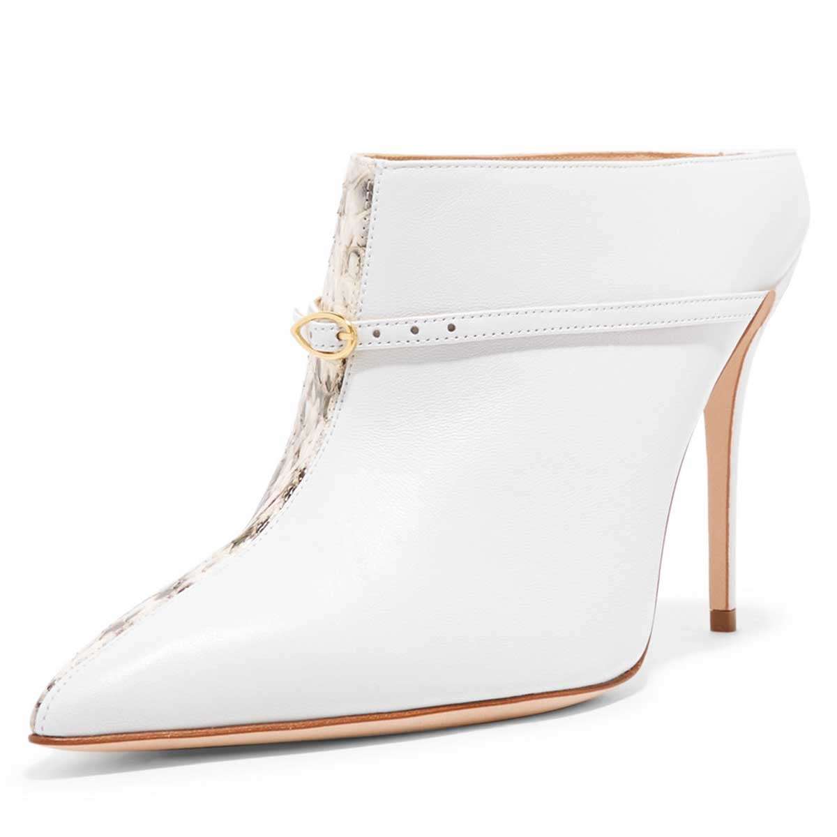 White Python Mule Heels Pumps