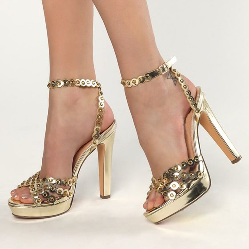 Classic Champagne Platform Sandals Women's Ankle Strap High Heels Party Shoes