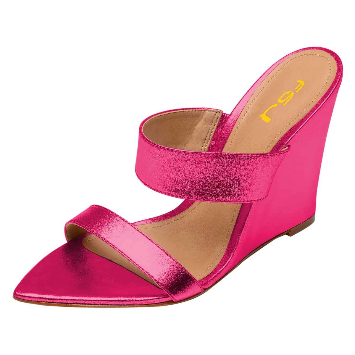 Pink Wedge Heels Mule Sandals