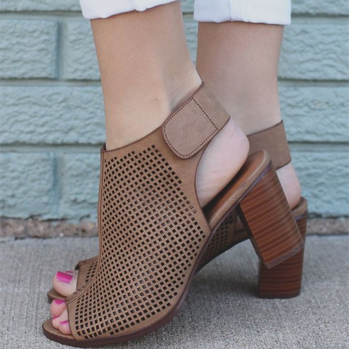 Brown Chunky Heels Open Toe Boots Slingback Summer Boots