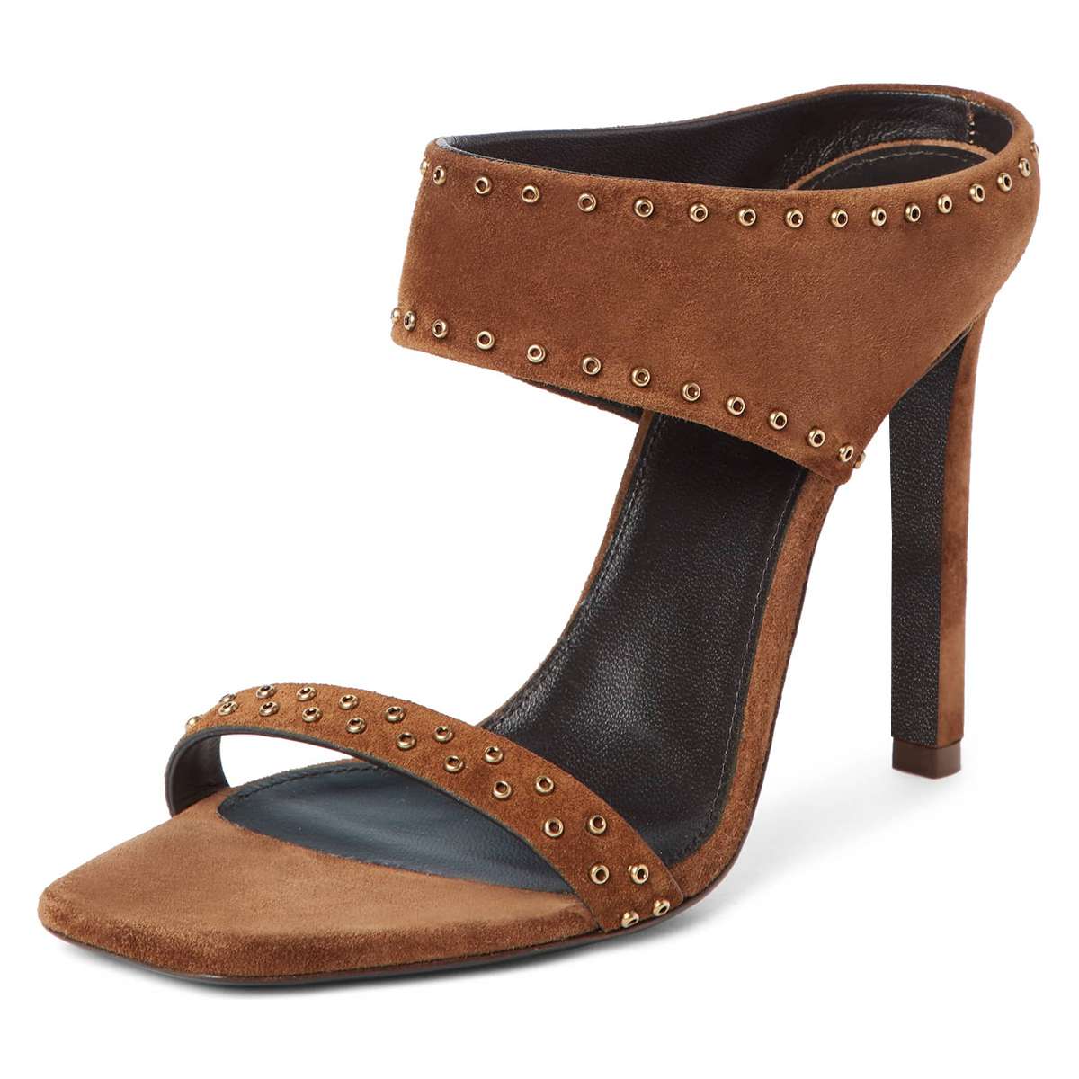 Brown Vegan Suede Open Toe Cut Out Mule Heels
