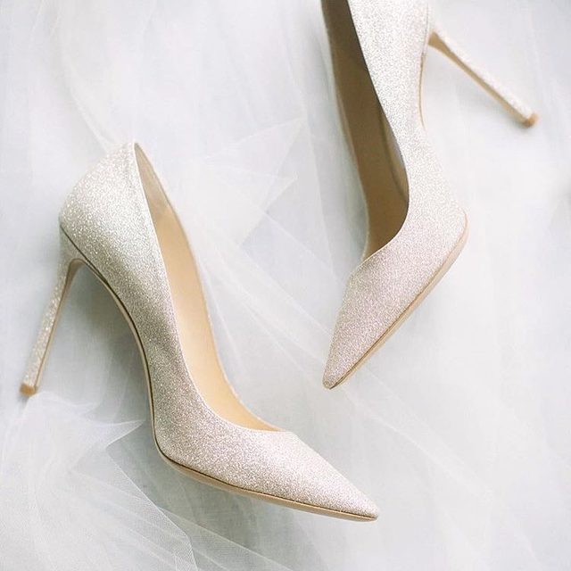 White Glitter Wedding Shoes Pointy Toe Stiletto Heels Pumps