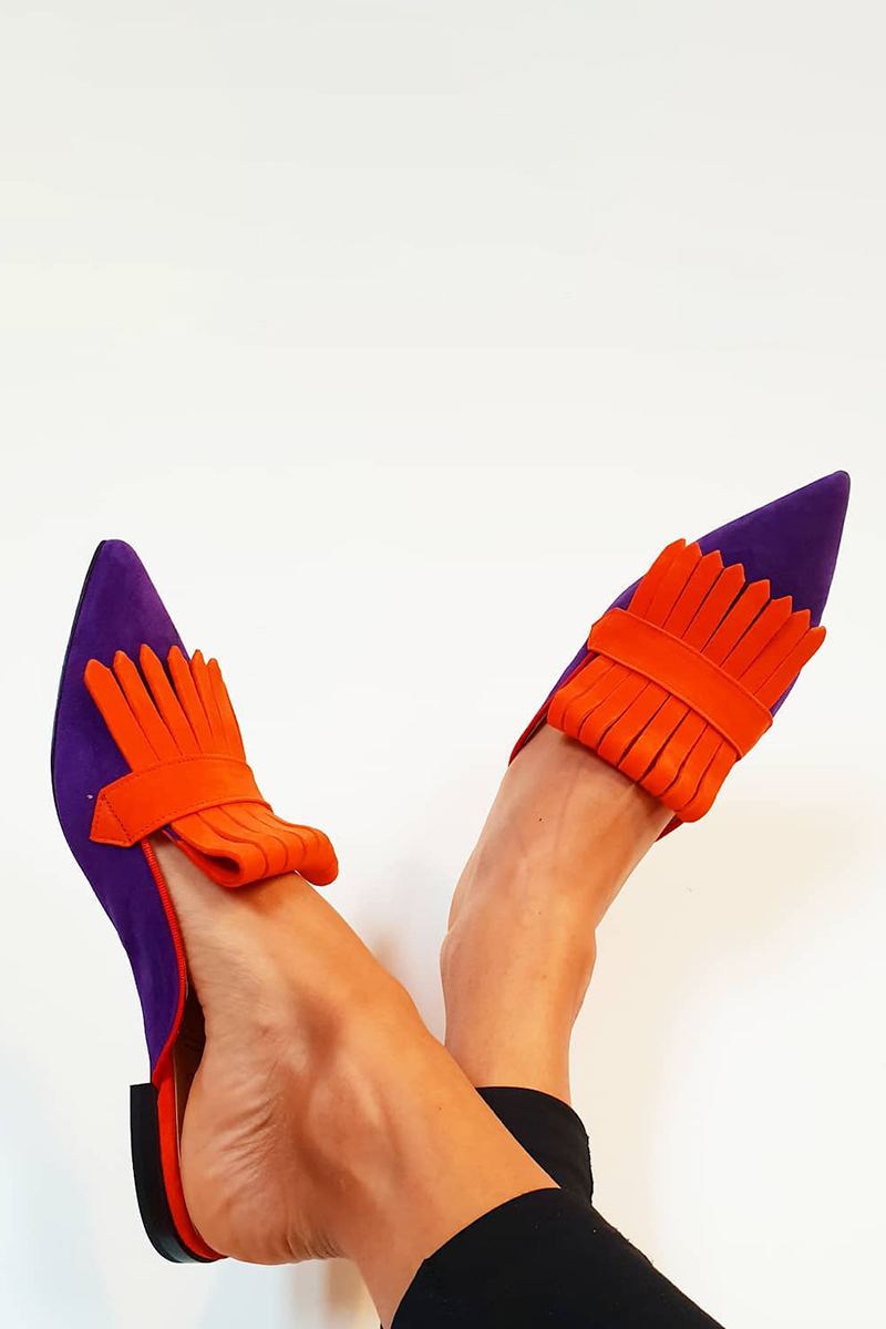 Faux Leather Colorblock Tassels Slip On Pointy Toe Mules