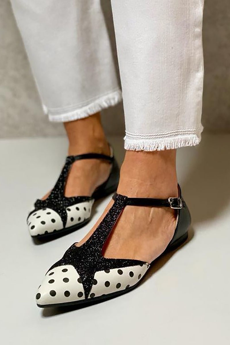 Glitter Stitching Polka Dot Print Pointy Toe Flats