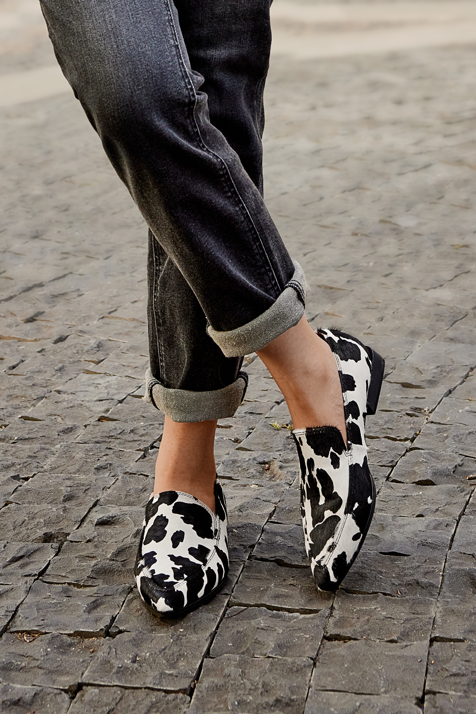 Genuine Leather Cow Pattern Print Pointed Toe Casual Comfortable Flat Loafers