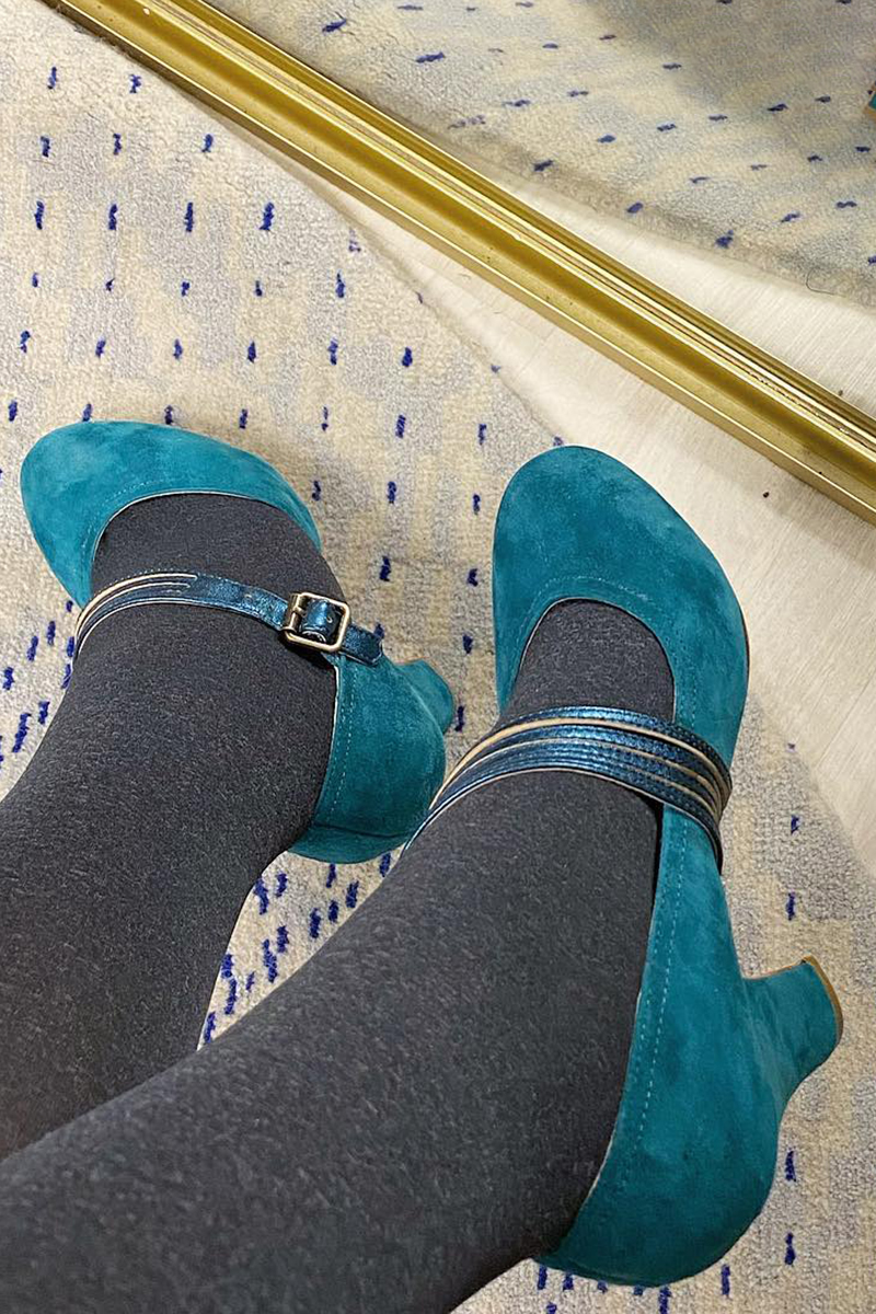 Multi Straps Buckles Round Toe Faux Suede Navy Chunky Heels Pre Order