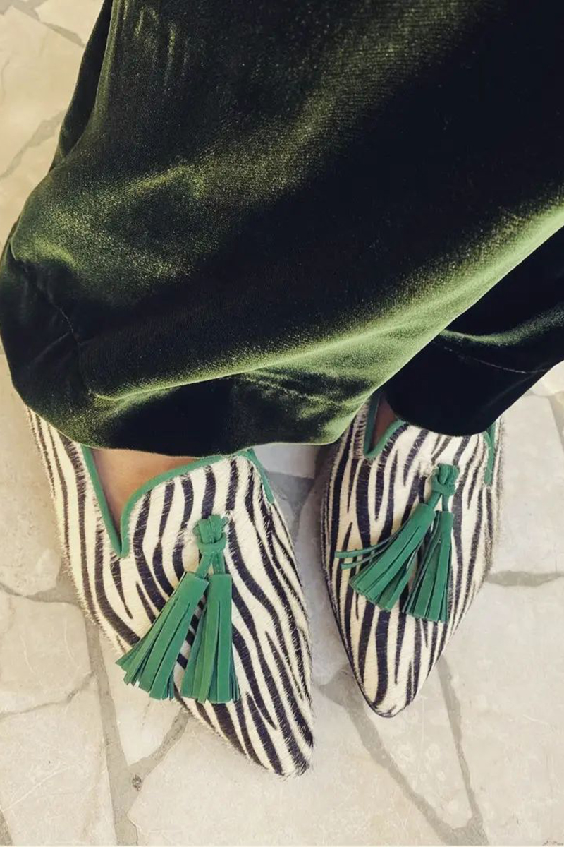 Zebra-Stripe Contrast Color Tassels Pointy Toe Casual Flats