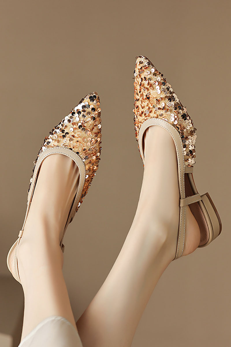 Sequin Pointy Toe Slingback Casual Low Heel Flats