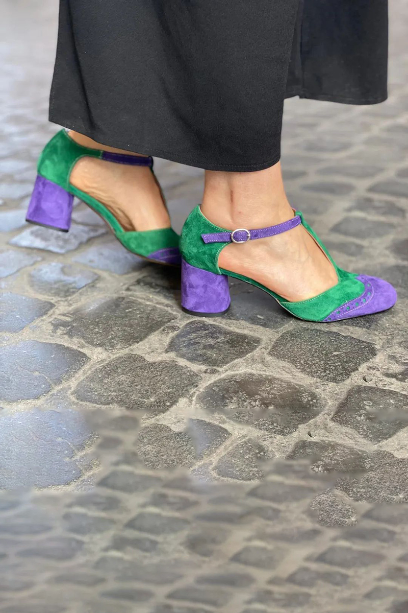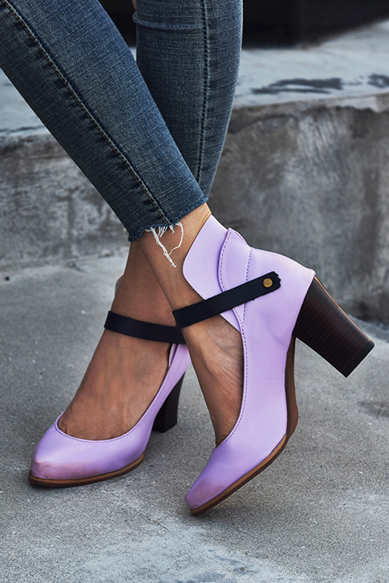 Colorblock Ankle Strap Buckle Patchwork Pointy Toe Chunky Heels