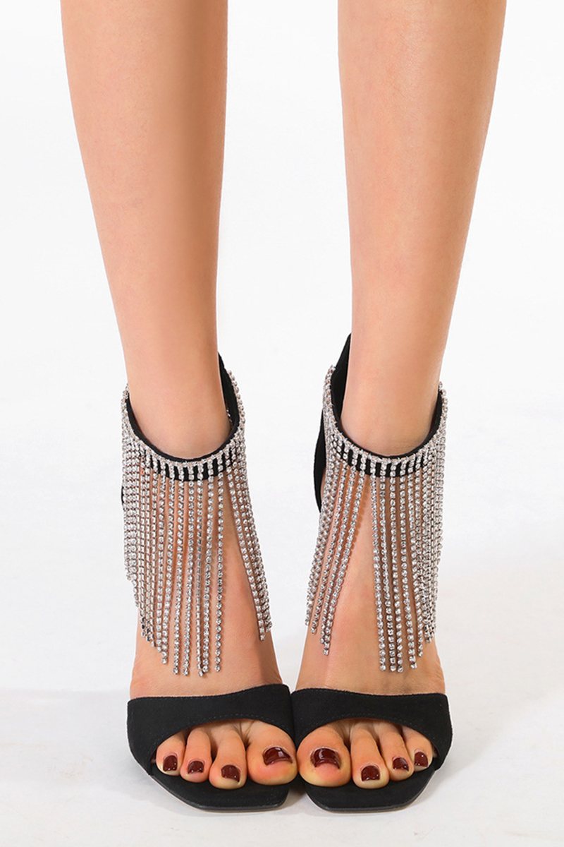 Rhinestones Fringed Trim Zipper Peep Toe Elegant Sandal Heels