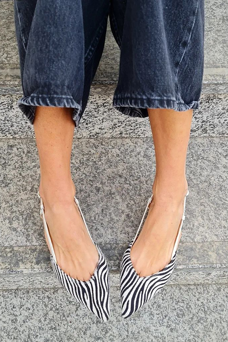 Zebra-Stripe Ankle Straps Pointy Toe Faux Leather Casual Flats