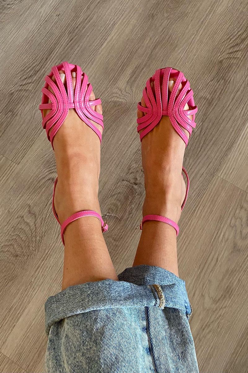 Shiny PU Leather Crochet Cross Strappy Peep Toe Stiletto Heels