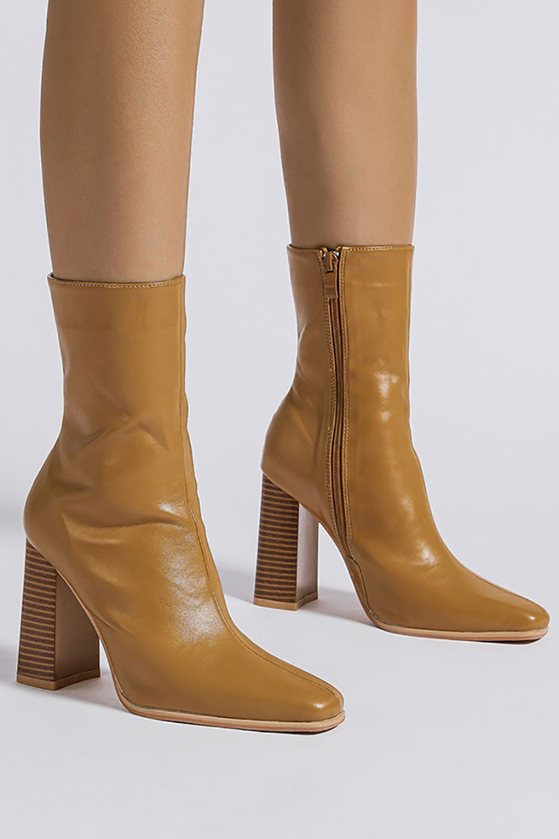 Square Toe Plain Zipper Chunky Heels Mid Calf Boots