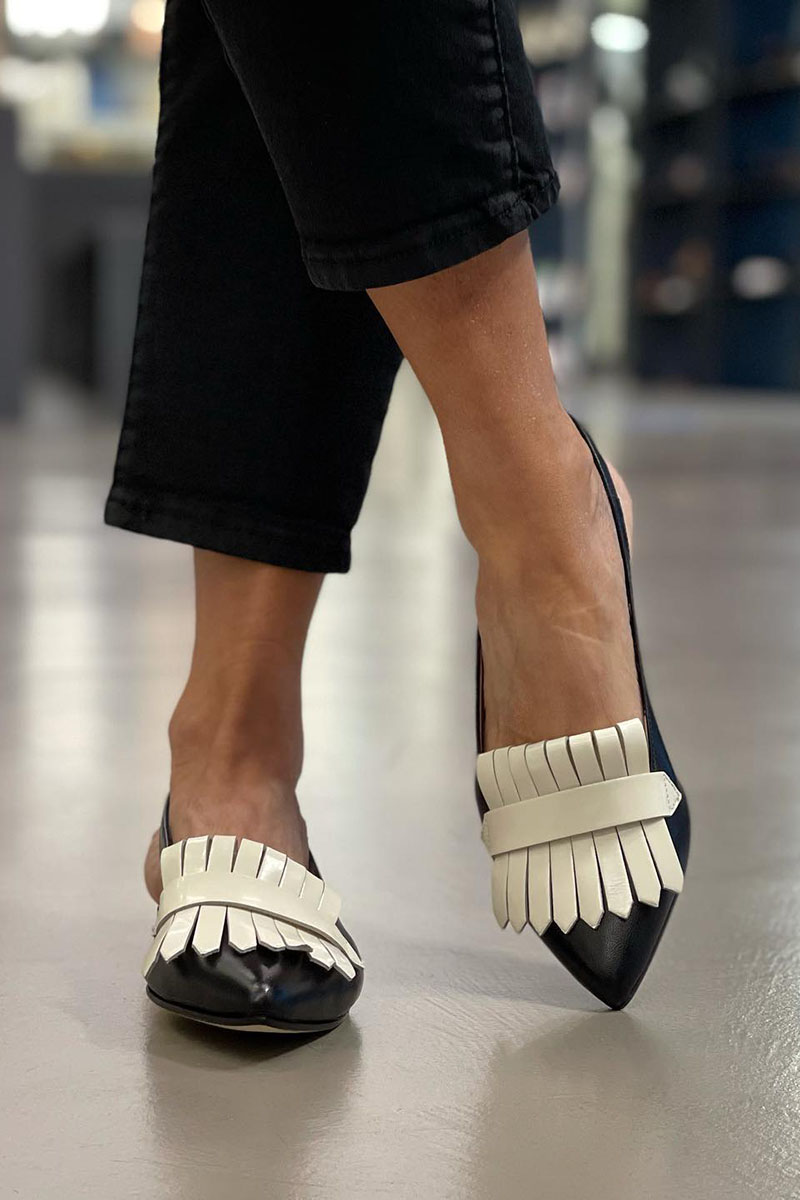 Fringed Trim Pointy Toe Slingback Strap Retro Flats
