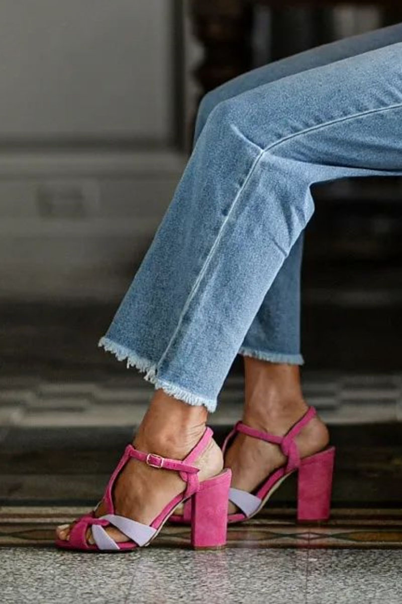 Colorblock Hollow Out Ankle Strap Sandals Chunky Heels