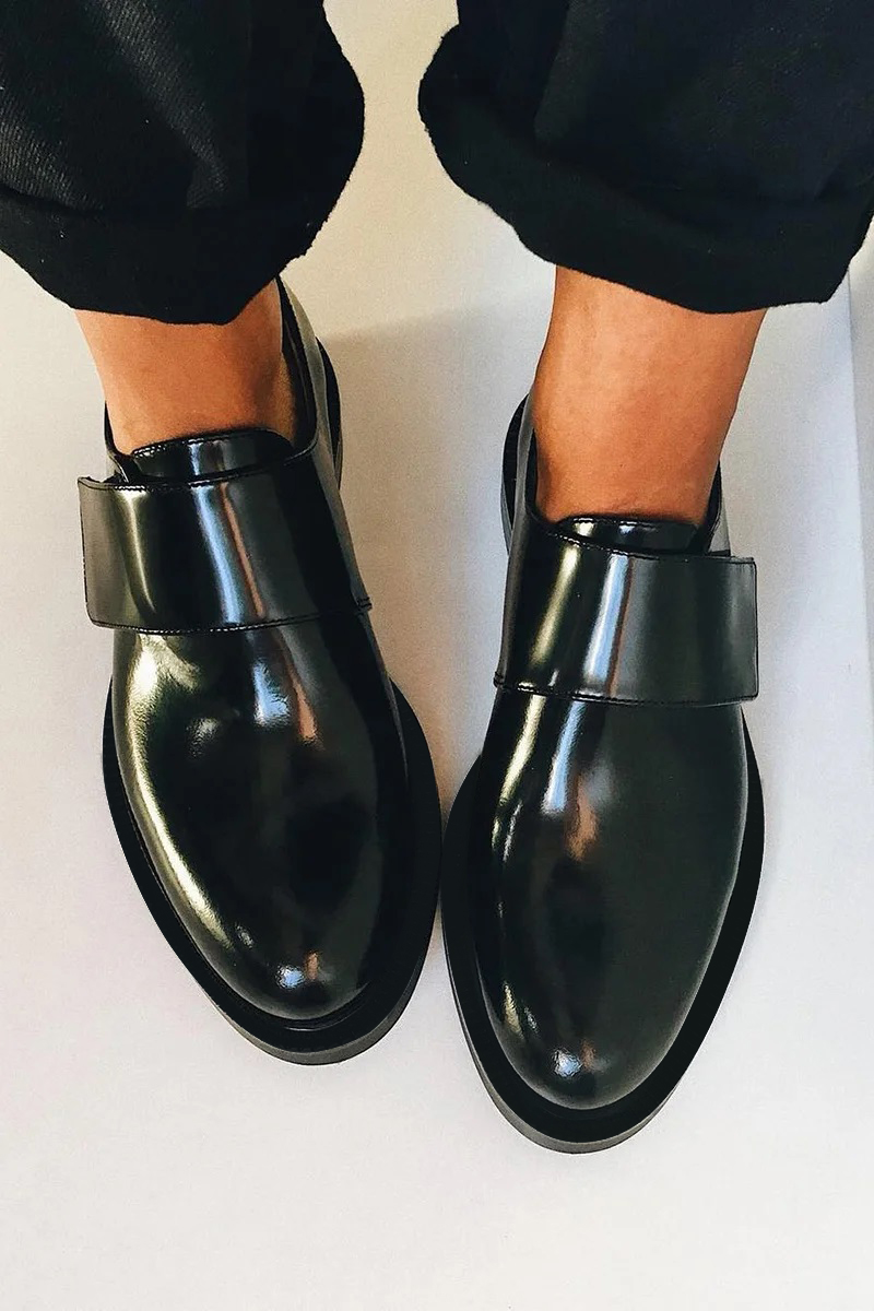 Solid Color Patchwork Strap Round Toe Black Oxfords