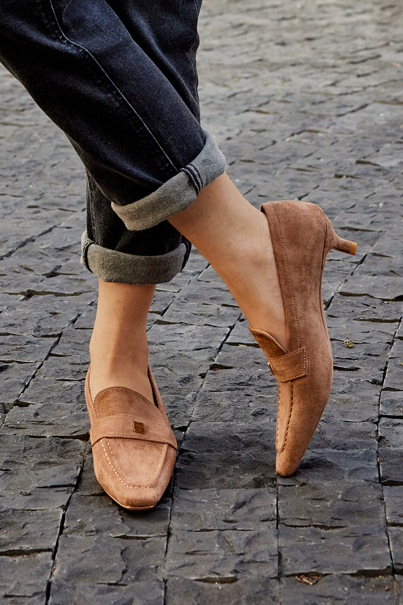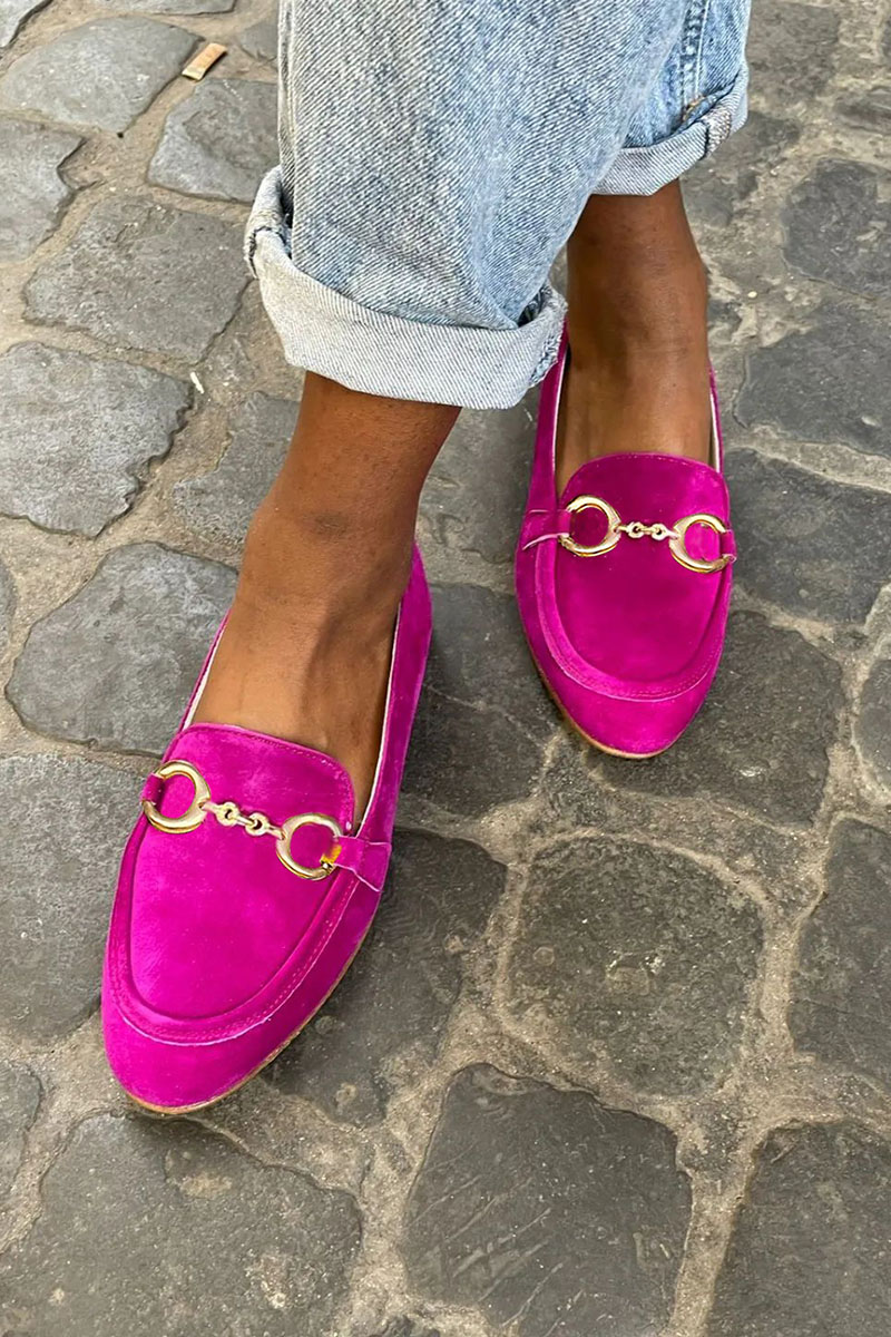 Matte Faux Suede Metallic Buckle Decor Loafers