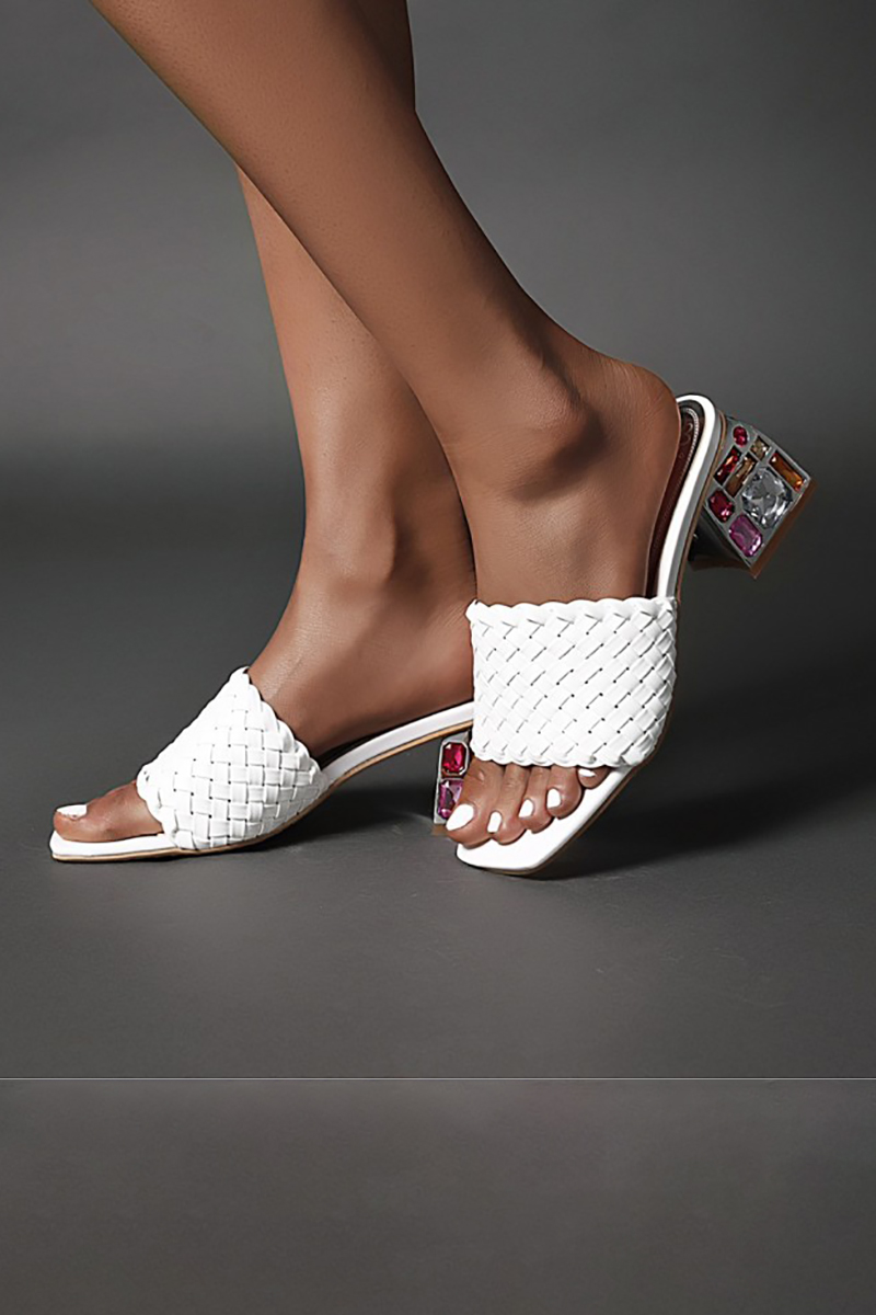 Crochet Rhinestone Slip On Square Heel Chunky Heels