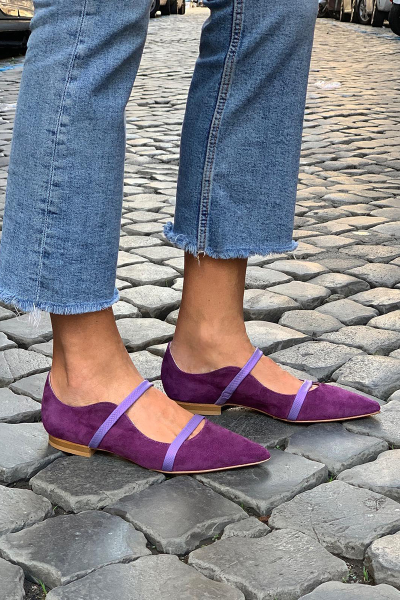 Matte Faux Suede Colorblock Two Straps Pointy Toe Flats