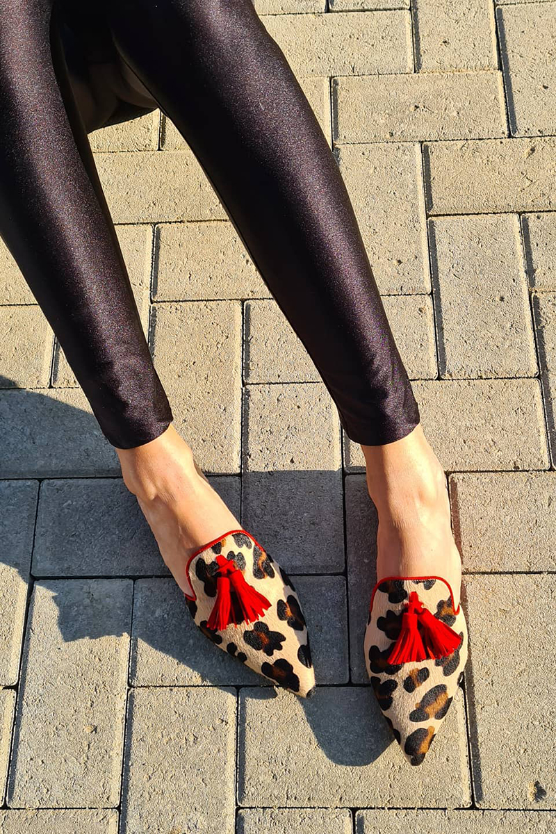 Leopard Print Colorblock Tassels Pointy Toe Shoes Slip On Mules