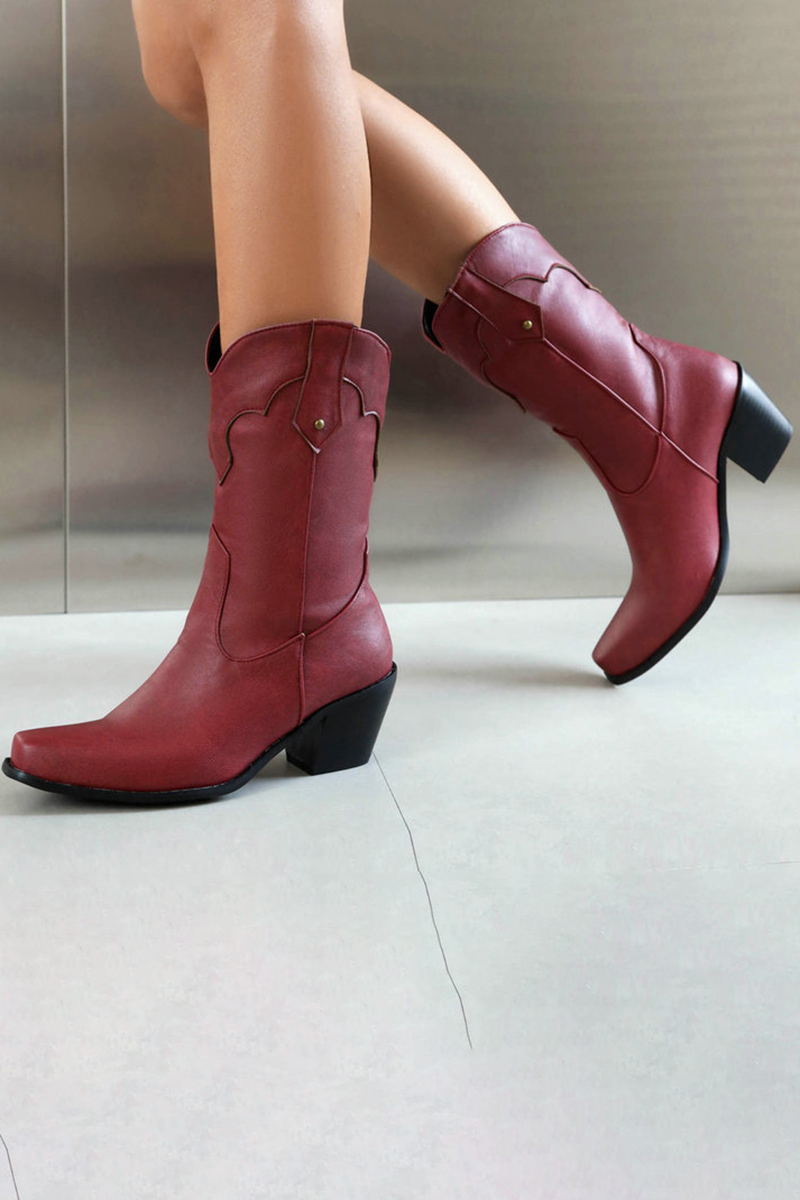 Solid Plain Stitch Detail Patchwork Square Toe Kitten Heels