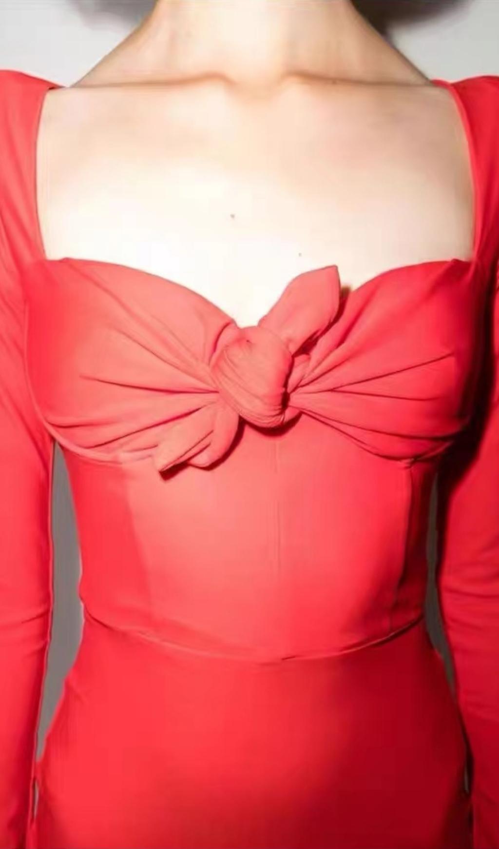 The super fun feminine design of our dress. The knot in the chest is one of our characteristics. We especially liked the skin-revealing cut at the hips. adding a bit of boldness.
