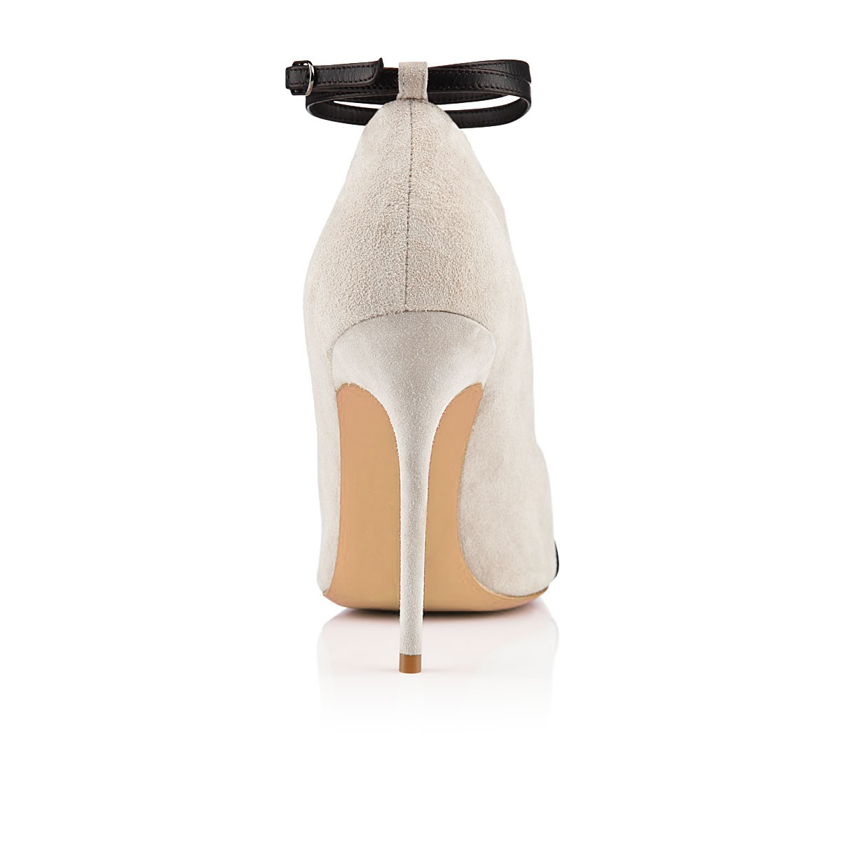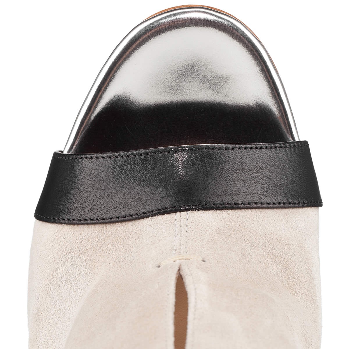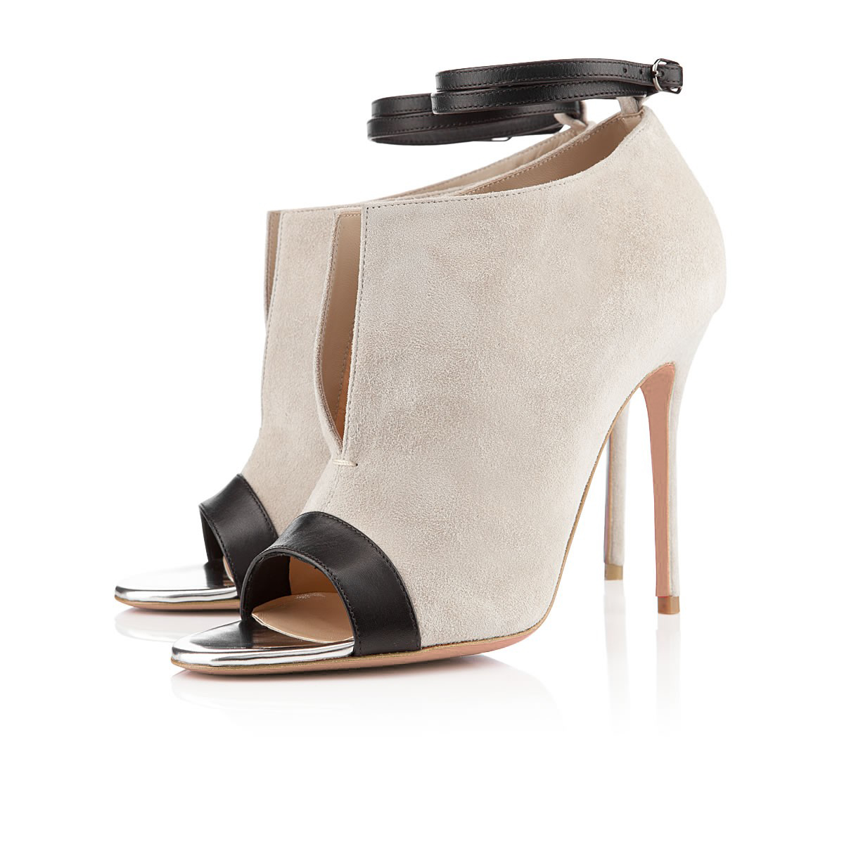 | Name | Beige and Black Ankle Strap Stiletto Heel Vegan Suede Peep Toe Booties |