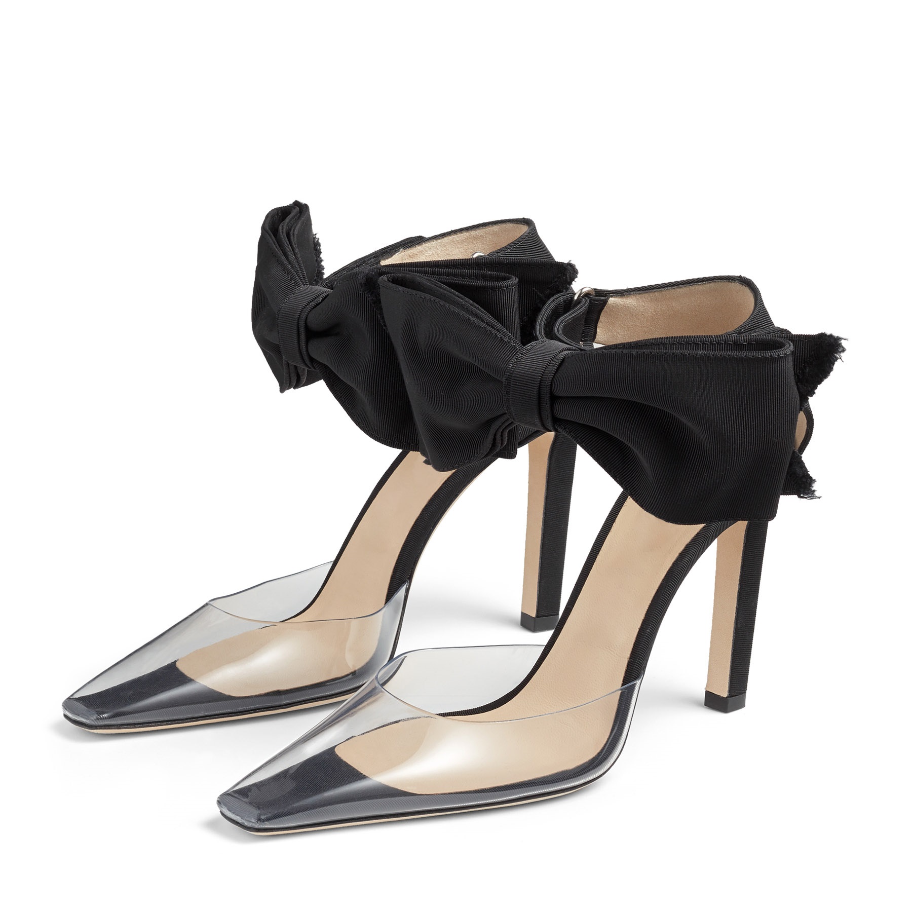 | Name | Black Bow Ankle Strap Heels transparent PVC Chunky Heel Pumps |