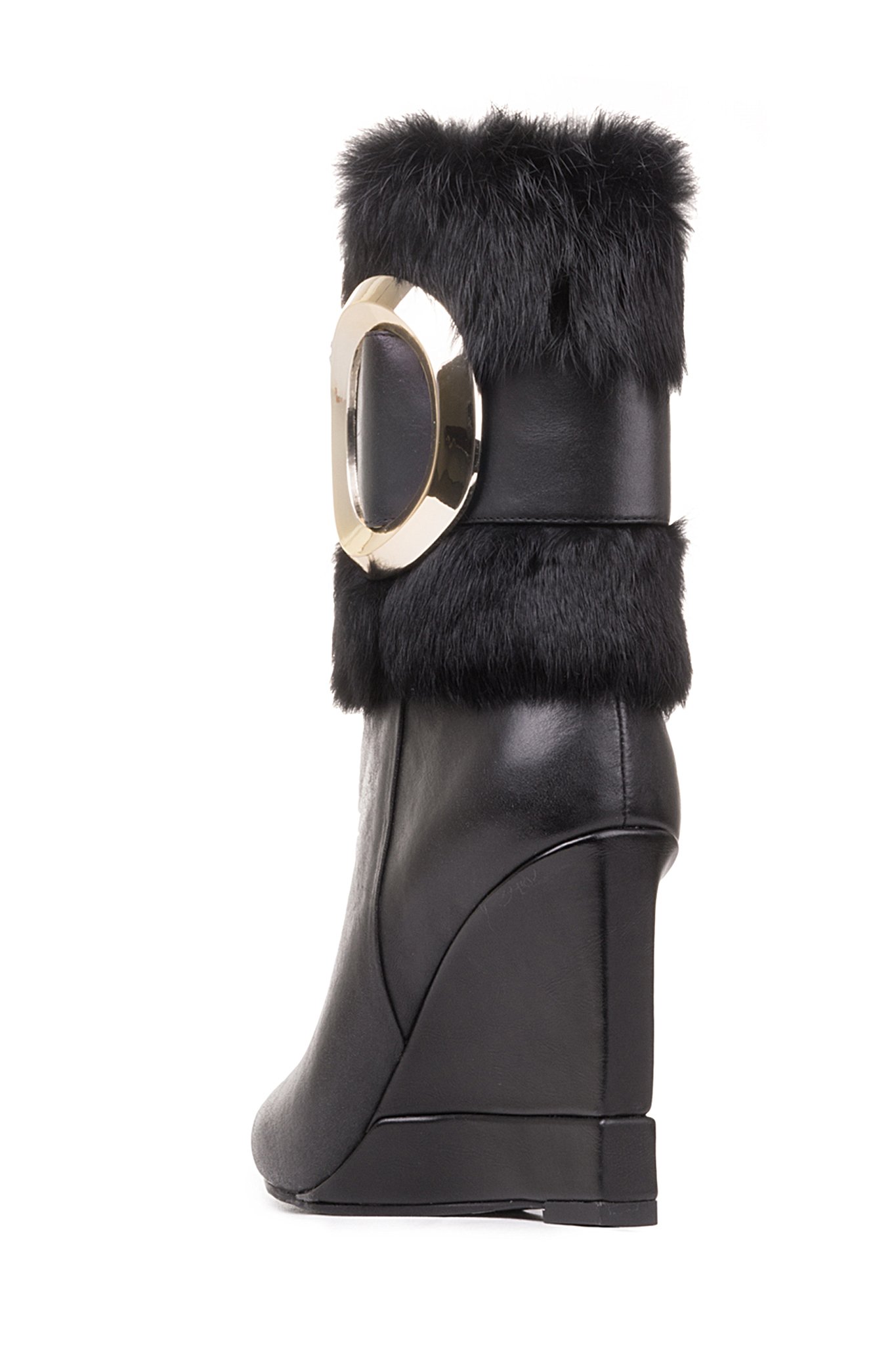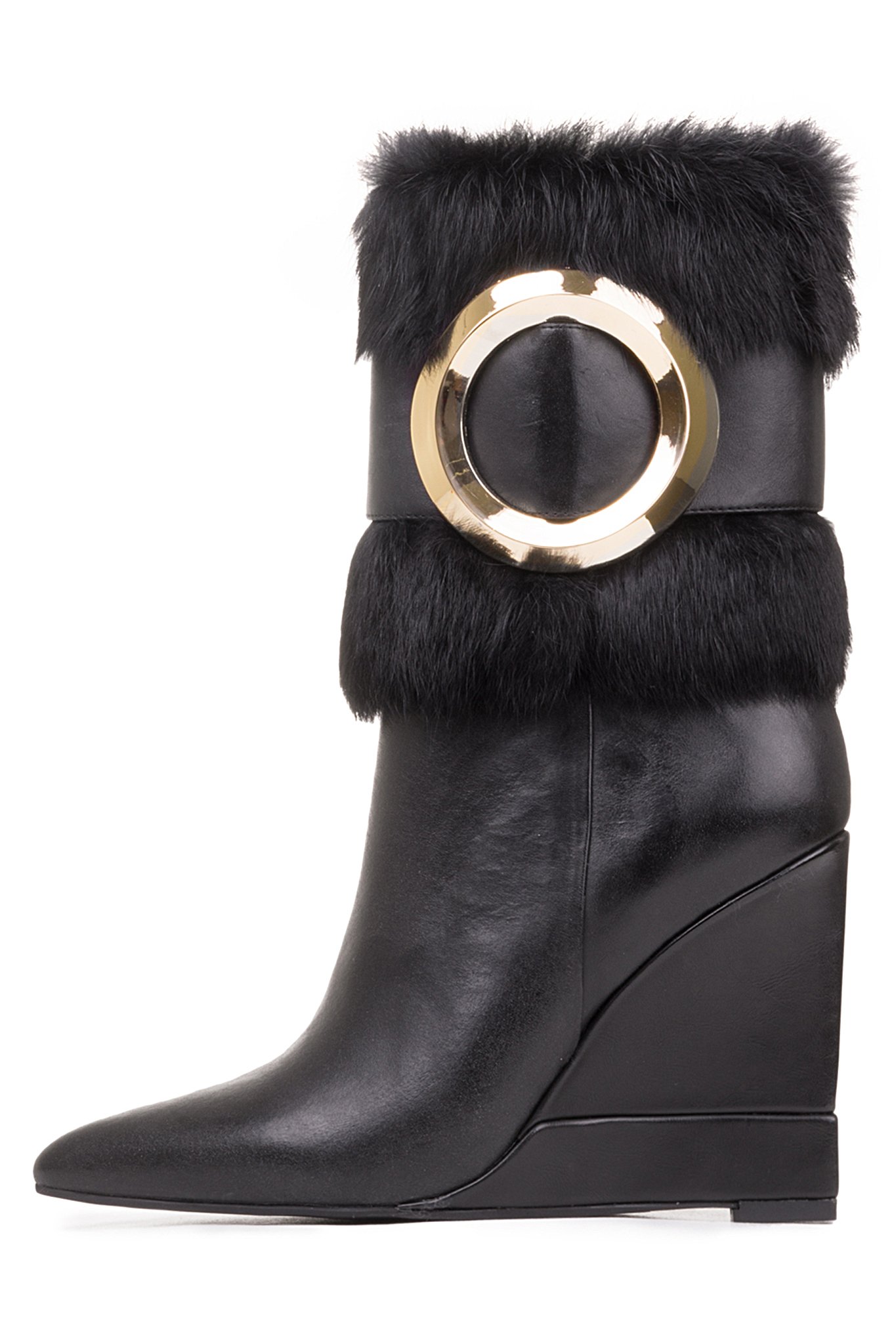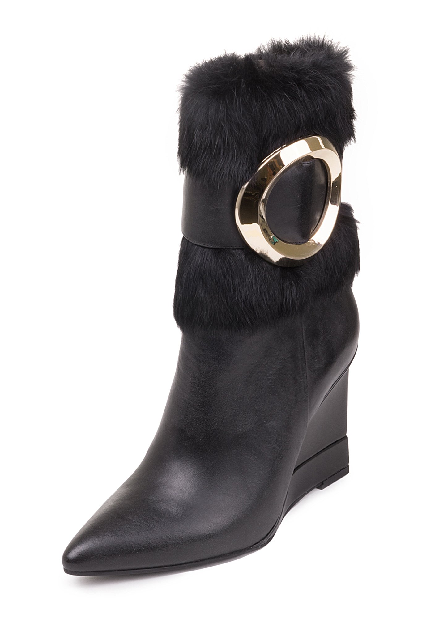 | Name | Black Wedges Winter Boots Gold Hardware Pointy Toe Fashion Fur Boots |