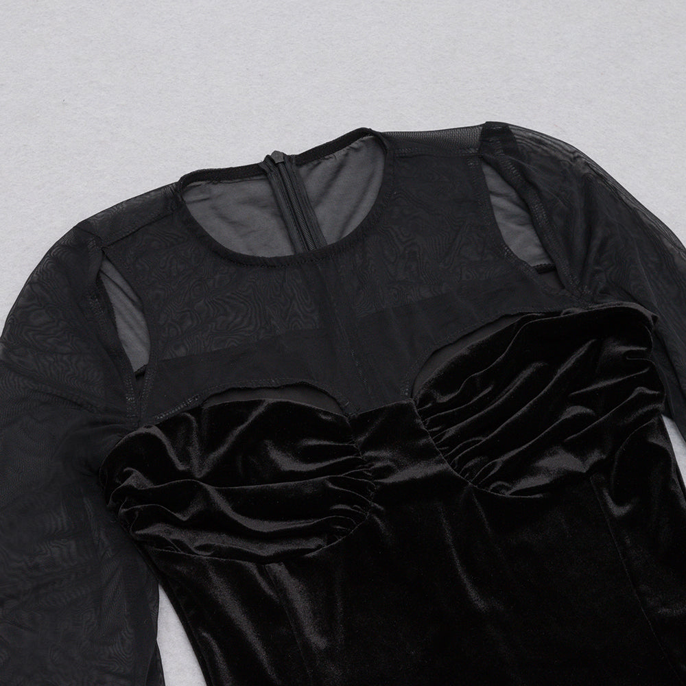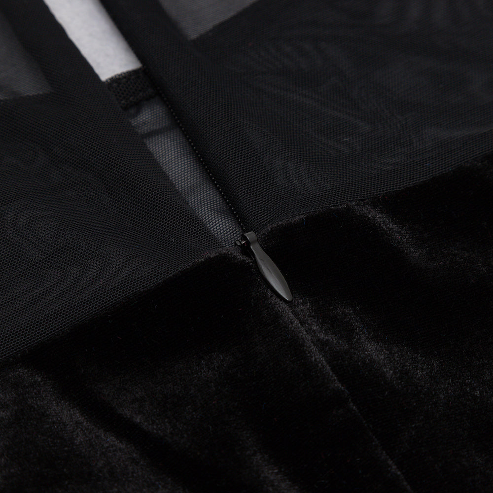Wearing this black mesh stitched velvet dress on a weekend date. you will be the most beautiful queen of the audience. The mesh fabric is full of hazy beauty. making the soft body curve looming under the fabric and sexy. The velvet fabric is very textured and gives people a noble and elegant feeling. The bold collision of the two fabrics makes this dress more interesting and fashionable.