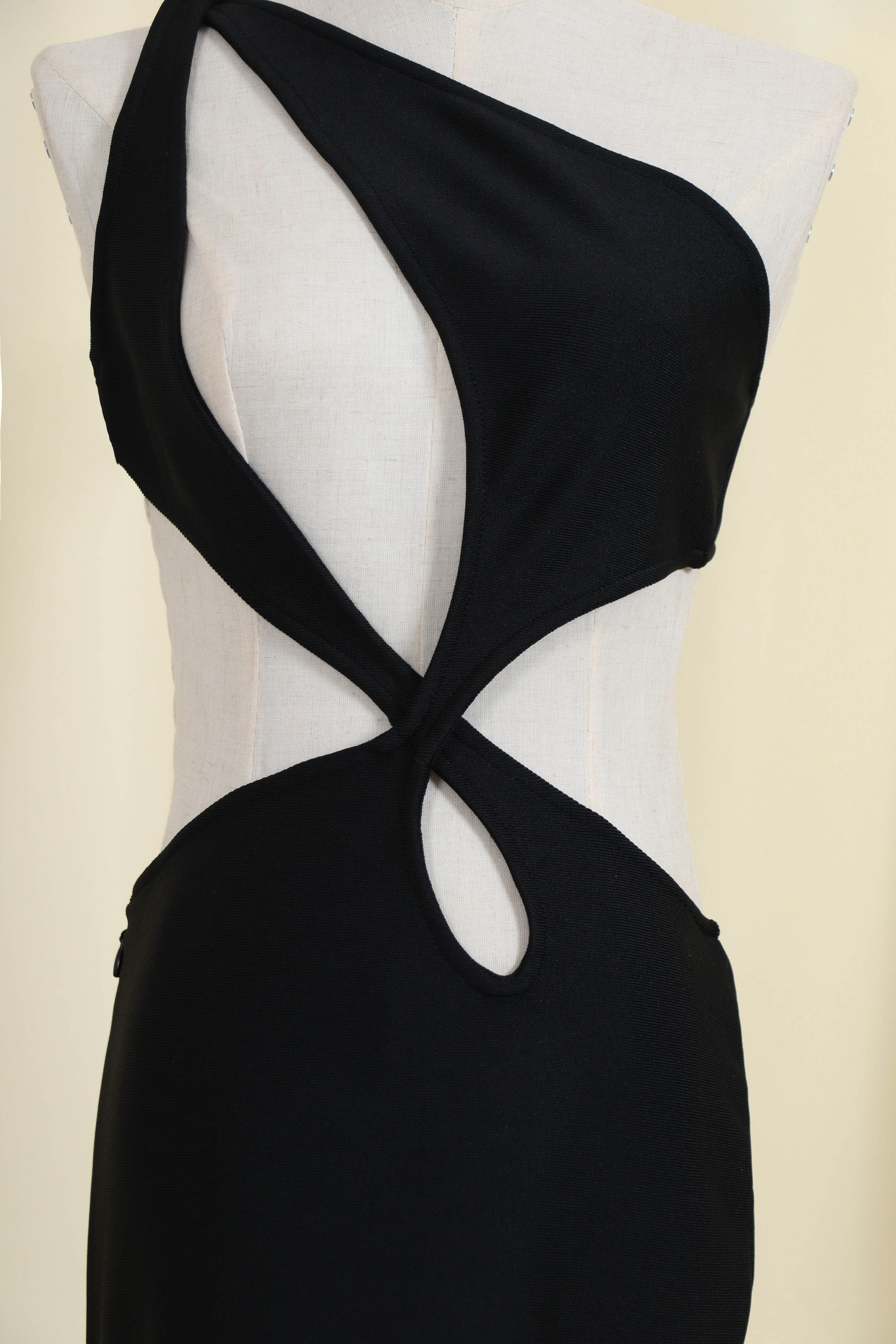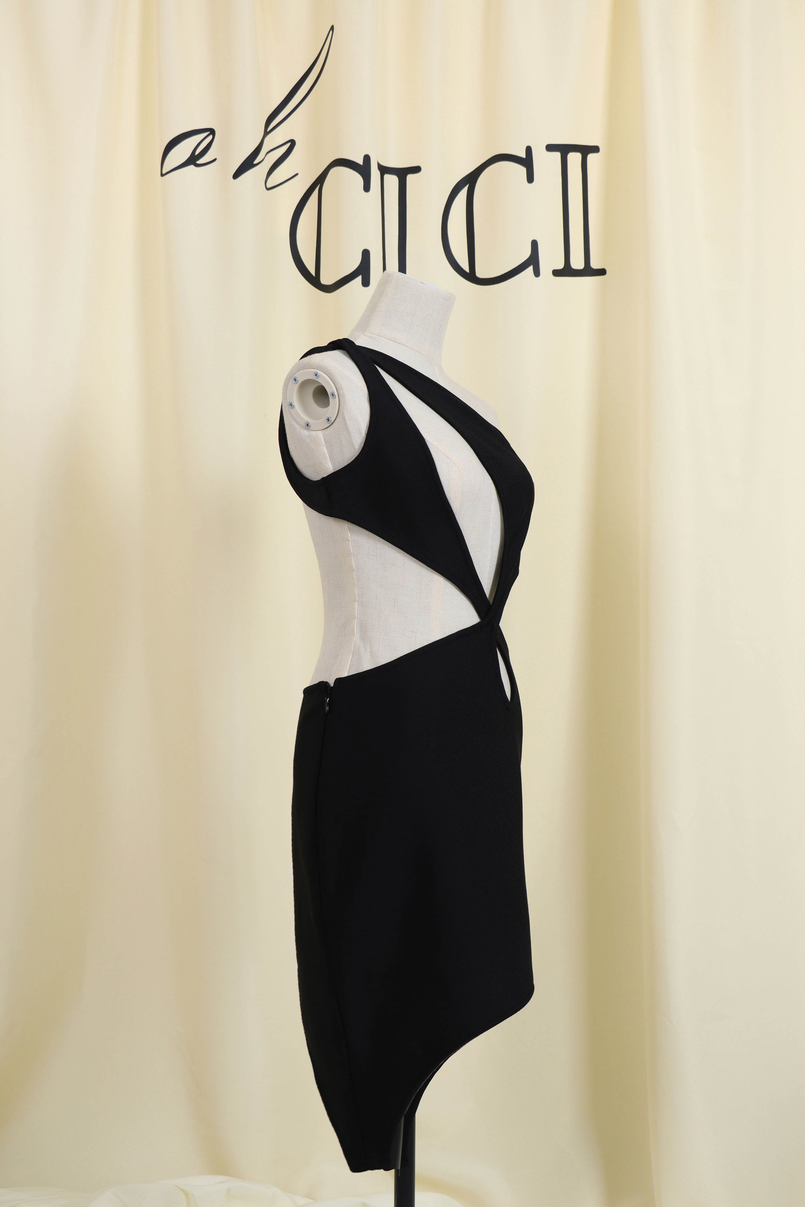 Fall for our black romance mini dress.Made from our ultra-luxe heavyweight bandage fabric. the cutout one-shoulder dress has a seriously sexy shape.Pair with your favorite heels and you'll be ready for date night.