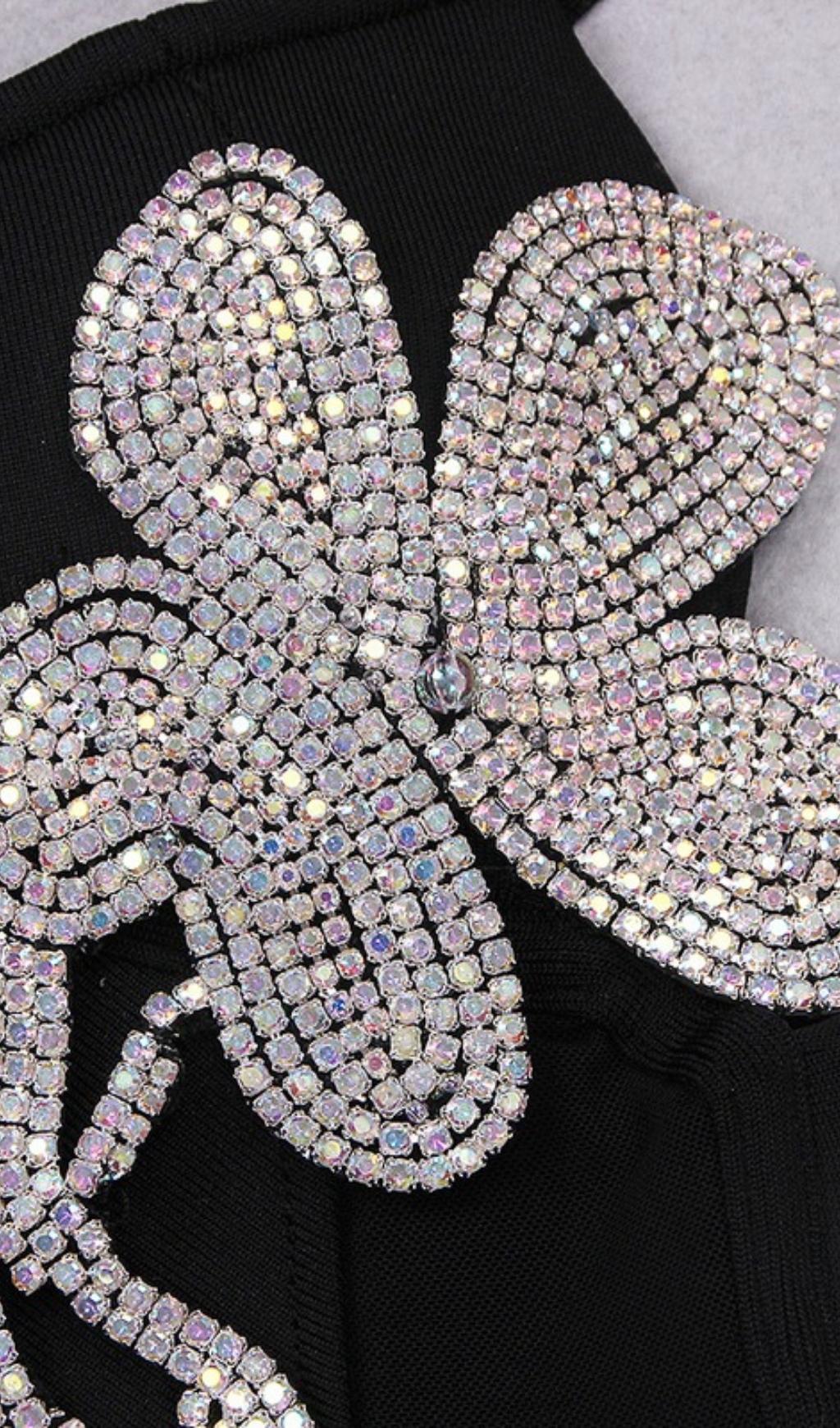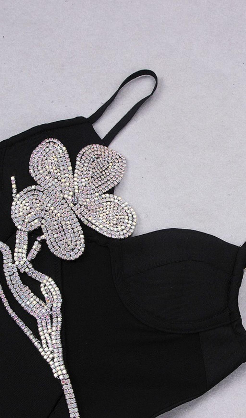 Update your new season wardrobe with our Black Diamante Midi Bandage Dress. The midi dress is constructed from our ever-famous stretch bandage fabric to caress your curves and create a perfect silhouette.Thespecial floral diamond embellishment. the high slit on the sides and the classic black hue make the whole look elegant and sexy.Pair with your favorite heels and you'll be ready for date night.