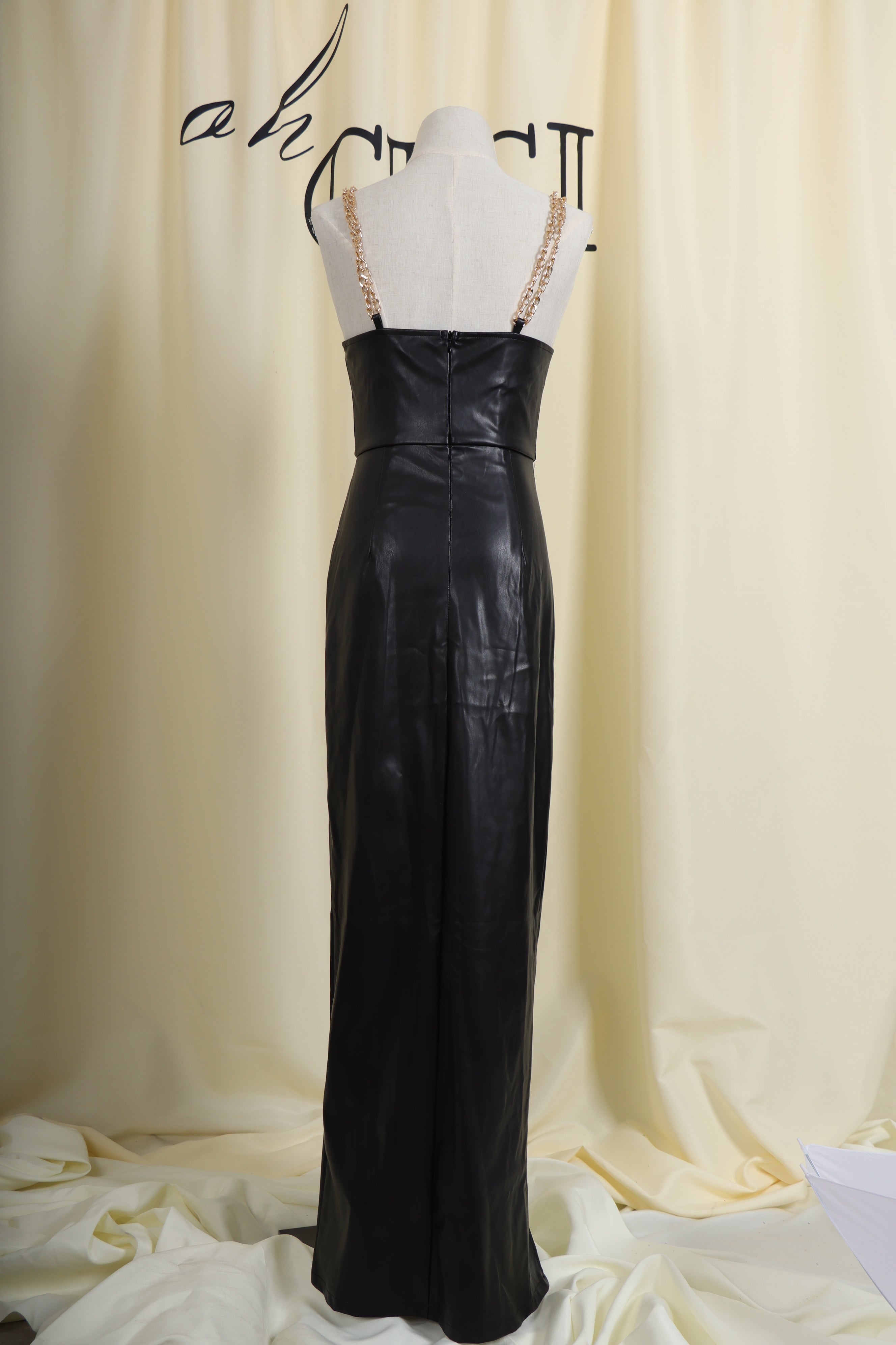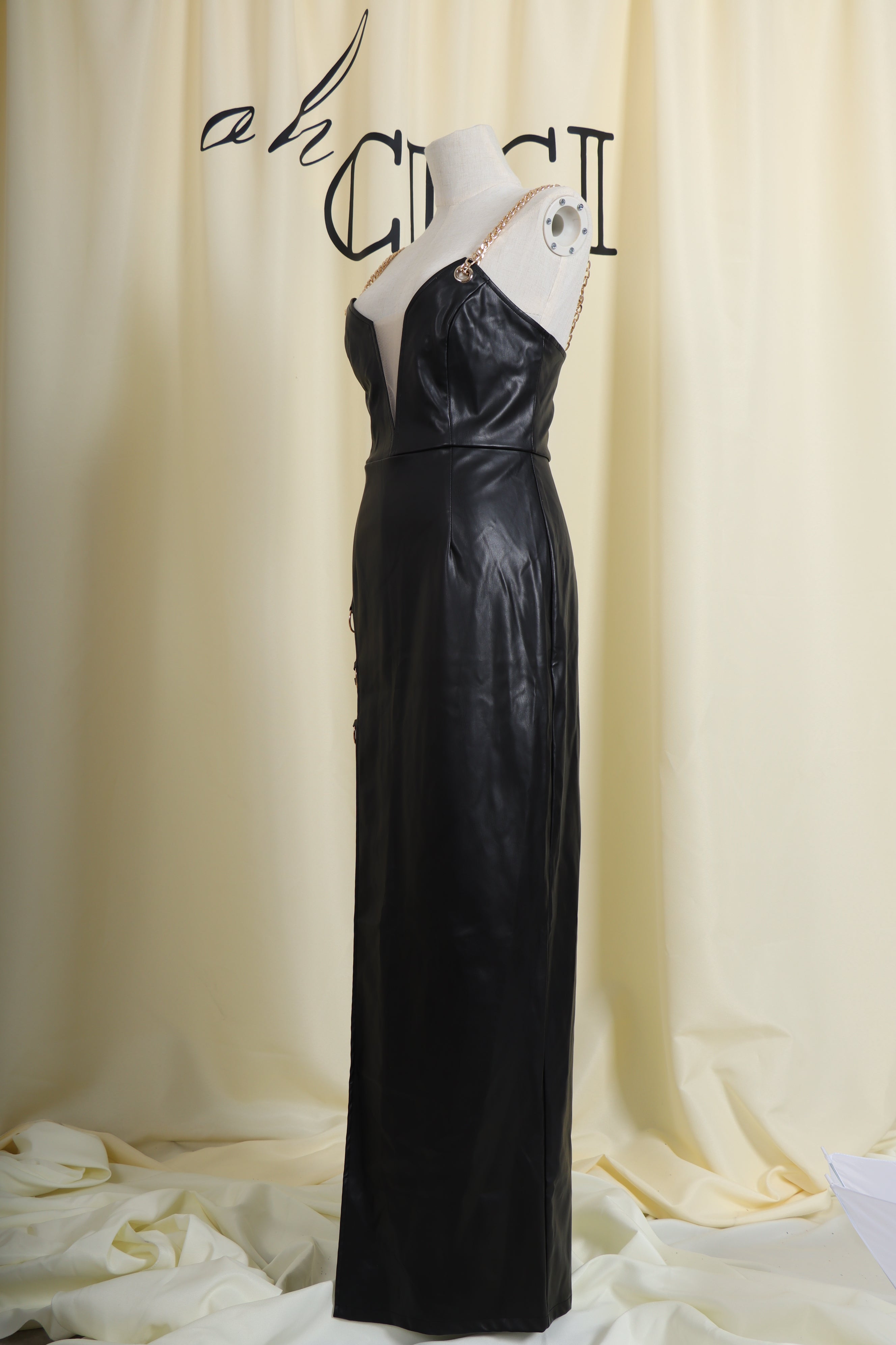 If you want to be a sexier. more attractive woman. check this out. You deserve this dress. The waist-in design shows off your beautiful figure. The design of chain sling makes you become the most dazzling sexy girl in the crowd. Pure black colour lets you become intellectual and elegant. The design of deep V and high slit makes the whole dress more unique.
